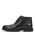 Черные кожаные ботинки в классическом стиле. За дополнительный комфорт стоп и термоустойчивость отвечают подкладка и стелька из натурального меха. Фиксацию обуви обеспечивают плотная шнуровка и застежка на молнию. Плотная подошва из резины отличается прочностью и хорошим сцеплением с поверхностью.