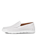 Белые кожаные мокасины с миндалевидным мысом и перфорацией. За хороший воздухообмен и комфортную посадку отвечают мягкие кожаные стелька и подкладка. Эластичные вставки по бокам союзки отлично фиксируют летние мужские туфли на ноге. Белая подошва из резины отличается износостойкостью и гибкостью.