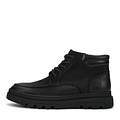 Теплые ботинки с высокой шнуровкой в черном цвете. Верх сочетает бархатистый натуральный нубук с укреплением на союзке из прочной КРС. Шерстяные подкладка и стелька обеспечивают комфорт ног на улице и в помещении. Широкая резиновая подошва отличается хорошим сцеплением с любой поверхностью.