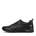 Базовые черные кожаные кроссовки. Комфорт стоп формируют текстильная подкладка и стелька, выполненная из мягкой натуральной кожи. Гибкая резиновая подошва обеспечивает хорошее сцепление с поверхностью. Шнуровка надежно фиксирует пару на ноге. Утолщенный ворот бережно поддерживает зону щиколоток.