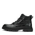 Стильные черные ботинки из натуральной кожи. Утолщенный ворот бережно поддерживает щиколотки и спасает от продувания. Шерстяные подкладка и стелька поддерживают комфортную температуру внутри обуви на улице и в помещении. Резиновая подошва с глубоким протектором и защитным рантом способствует улучшенному сцеплению с любой поверхностью.
