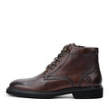 Демисезонные мужские ботинки с миндалевидным мысом выполнили из гладкой натуральной кожи. Цвет моделли - коричневый. Верхнюю часть шнуровки усилили металлической петлёй и дополнили боковой молнией. За комфорт стоп отвечают подкладка и стелька из ворсина. Утолщенный ворот поддерживает зону щиколоток. Подошва выполнена из ЭВА материала, обеспечивает отличное сцепление с различными покрытиями и демонстрирует высокую устойчивость к износу.