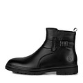 Лаконичные черные мужские ботинки выполнены из мелкозернистой натуральной кожи. Подкладка и стелька, изготовленные из мягкого ворсина, надежно защищают стопы от холода. Пара декорирована ремешком и пряжкой в области щиколотки. Утолщенная подошва из материала ТЭП гарантирует отличное сцепление с поверхностью. Петля на голенище ускоряет процесс фиксации обуви. Застежка на молнию.