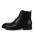 Высокие мужские кожаные ботинки в универсальном черном цвете. Подкладка и стелька выполнены из мягкого ворсина, который гарантирует комфорт стоп. Модель со шнуровкой и удобной застежкой на молнию. Гибкая подошва из материала ТЭП обеспечивает устойчивость на любых покрытиях даже в дождь.