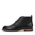 Минималистичные черные ботинки с верхом из гладкой кожи. Подкладка и стелька изготовлены из мягкого ворсина, обеспечивающего стопам комфорт в любую погоду. Гибкая и легкая подошва из тунита поддерживает стопы в оптимальном положении и гарантирует надежное сцепление с поверхностью. Модель со шнуровкой и практичной молнией. Контрастный шов на ранте добавляет паре характера, а петля на вороте ускоряет процесс надевания обуви.
