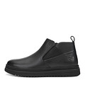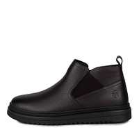 Лаконичные ботинки из натуральной зернистой кожи черного оттенка. За тепло отвечает густой натуральный мех, из которого изготовлены подкладка и стелька. Широкая рифлёная подошва из ТЭП обладает антискользящими свойствами. Подъем регулируется за счет эластичной вставки. Петля на заднике и боковая молния облегчают процесс надевания пары.