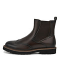 Коричневые челси с петлей на заднике и брогированной вставкой на мысе выполнили из гладкой натуральной кожи. Подкладку зимней обуви изготовили из натуральной шерсти. Подошва из ЭВА материала, сконструирована по технологии «Munz Light»: более износостойкая и прочная, чем подошвы из традиционных материалов.