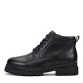 Повседневные черные ботинки на холодный сезон. Верх выполнен из гладкой натуральной кожи. Утолщенный ворот бережно поддерживает щиколотки, оставляя свободу движений. Шерстяные подкладка и стелька обеспечивают комфортную терморегуляцию на улице и в помещении. Высокая рифленая подошва из резины отличается прочностью и хорошим сцеплением с любой поверхностью. Модель фиксируется шнуровкой и удобно застегивается на молнию.
