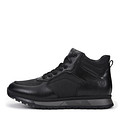 Минималистичные высокие кроссовки в универсальном черном цвете. Верх выполнен из мягкой кожи из спилка. Утолщенный ворот бережно поддерживает зону щиколоток, не сковывая движений. Подкладка и стелька утеплены натуральной шерстью. Высокая резиновая подошва с выраженными протекторами отличается прочностью и хорошим сцеплением с поверхностью. Модель фиксируется шнурками и удобной застежкой на молнию.