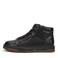Повседневные высокие кеды в универсальном черном оттенке. Верх выполнен из гладкой кожи из спилка с водоотталкивающим покрытием. Подкладка и стелька утеплены мягкой натуральной шерстью. Высокая подошва из ТЭП отличается легкостью, морозоустойчивостью и хорошим сцеплением с любой поверхностью. Модель фиксируется шнурками и удобно застегивается на молнию.