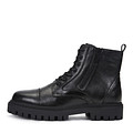 Стильные черные ботинки с высокой шнуровкой. Верх выполнен из гладкой натуральной кожи. Подкладка и стелька из шерсти обеспечивают комфортную температуру внутри обуви. Высокая подошва из ТЭП с выраженными протекторами отличается легкостью, морозоустойчивостью и хорошим сцеплением с любой поверхностью. Модель с удобной застежкой на молнию.