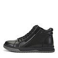 Базовые черные кеды для повседневного комфорта. Верх изготовлен из прочной кожи из спилка с влагонепроницаемым покрытием. Утолщенный ворот берет бережно поддерживает зону щиколоток. Пара утеплена мягким ворсином. Высокая подошва из материала ТЭП отличается легкостью, устойчивостью к истиранию и хорошим сцеплением с поверхностью. Модель фиксируется шнурками и удобно застегивается на молнию.