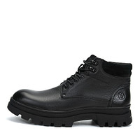 Лаконичные ботинки на холодный сезон в насыщенном коричневом оттенке. Верх выполнен из мелкозернистой кожи. Утолщенный ворот бережно поддерживает зону щиколоток, оставляя свободу движений. Подкладка и стелька из мягкой натуральной шерсти обеспечивают комфортную терморегуляцию на улице и в помещении. Высокая резиновая подошва с выраженными протекторами отличается прочностью и надежным сцеплением с поверхностью.