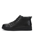 Черные ботинки в спортивном стиле на холодный сезон. Материал верха - мягкая кожа из спилка. Утолщенный ворот бережно поддерживает щиколотки и не сковывает движений. Подкладка и стелька утеплены натуральной шерстью. Высокая подошва из резины обеспечивает устойчивость даже на скольких поверхностях.