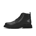 Классические черные ботинки на холодный сезон. Верх выполнен из зернистой натуральной кожи. Подкладка и стелька утеплены мягкой шерстью, поддерживающей оптимальный микроклимат внутри обуви. Утолщенная резиновая подошва с выраженными протекторами обеспечивает надежную защиту от скольжения. Модель со шнуровкой и удобной застежкой на молнию для дополнительного комфорта.