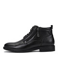 Минималистичные высокие черные ботинки. Верх модели изготовлен из гладкой натуральной кожи. За дополнительный комфорт стоп и термоустойчивость обуви отвечают подкладка и стелька из мягкого ворсина. Модель со шнуровкой, удобной застежкой на молнию и утолщенный ворот. Практичная петля на вороте ускоряет процесс надевания обуви. Пара хорошо дополнит образы с джинсами и брюками в деловом стиле.