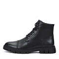Классические кожаные ботинки в универсальном черном оттенке. Подкладка и стелька утеплены натуральной шерстью для оптимальной терморегуляции внутри обуви. Утолщенная подошва из материала ТЭП с выраженными протекторами отличается легкостью, прочностью и хорошим сцеплением с поверхностью. Модель плотно фиксируется шнуровкой и удобно застегивается на молнию.