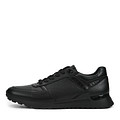 Базовые черные кожаные полуботинки в спортивном стиле гармонично дополнят мужской гардероб. Подкладка и стелька изготовлены из мягкой натуральной кожи, что обеспечивает комфорт стоп. Изогнутая подошва из материала ТЭП формирует устойчивость на любых покрытиях. Утолщенный ворот бережно поддерживает зону щиколоток.