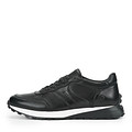 Черные кожаные мужские кроссовки. Комфорт стоп обеспечивают подкладка и стелька, выполненные из мягкой натуральной кожи. Гибкая резиновая подошва адаптируется под движения стопы. Шнуровка надежно фиксирует пару на ноге.