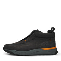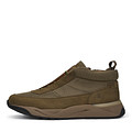 Стильные высокие кроссовки цвета хаки. Верх комбинирует бархатистый нубук и плотный текстиль. Подкладка и стелька утеплены мягким ворсином. Объемная подошва из материала ЭВА отлично амортизирует нагрузку на стопы. Модель фиксируется шнурками и удобной застежкой на молнию.