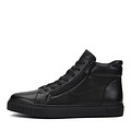 Лаконичные черные кеды для повседневных и спортивных образов. Верх выполнен из мягкой кожи из спилка. Утолщенный ворот бережно поддерживает зону щиколоток. Подкладка и стелька утеплены бархатистым ворсином. Высокая резиновая подошва отличается прочностью и хорошим сцеплением с любой поверхностью. Модель фиксируется шнурками и удобной застежкой на молнию.