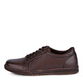 Минималистичные кожаные кеды благородного коричневого цвета. Подкладка и стелька, выполненные из дышащего текстиля, гарантируют идеальную посадку и комфорт стоп. Рифленая резиновая подошва обеспечивает поддержку стоп при движении и отличное сцепление с поверхностью. Пара хорошо впишется в повседневные образы с брюками и джинсами.