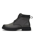 Дизайн актуальных темно-серых ботинок вдохновлен рабочей обувью. Материал верха - кожа из спилка, которая не пропускает влагу. Подкладка и стелька утеплены мягким ворсином. Утолщенная резиновая подошва отличается прочностью и хорошим сцеплением с любой поверхностью. Модель фиксируется шнурками и удобно застегивается на молнию.