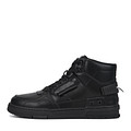 Стильные высокие кеды в универсальном черном цвете. Матовая кожа из спилка надежно защищает от ветра и влаги, а вставки из дышащего текстиля обеспечивают комфортный воздухообмен. Подкладка и стелька утеплены натуральной шерстью. Утолщённая прочная подошва из резины отличается устойчивостью на любых поверхностях.