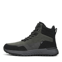 Удобные коричневые ботинки выполнены в спортивном стиле. Верх комбинирует бархатистую и гладкую фактуры искусственных нубука и кожи. Подкладка и стелька из современного аналога меха обеспечивает комфортную теплоизоляцию обуви. Высокая объемная подошва из материала ТЭП с выраженными протекторами отличается легкостью, гибкостью и хорошим сцеплением с поверхностью. Модель фиксируется шнуровкой и застегивается на молнию.