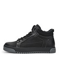 Повседневные высокие кеды в универсальном черном цвете. Верх комбинирует кожу с влагонепроницаемым покрытием и плотный дышащий текстиль. Подкладка и стелька утеплены мягким ворсином. Плотная подошва из материала ТЭП с выраженными протекторами отличается легкостью, износостойкостью и хорошим сцеплением с поверхностью. Модель фиксируется шнурками и удобно застегивается на молнию.
