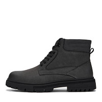 Теплые высокие ботинки черного цвета органично впишутся в гардероб активного мужчины. Материал верха - текстурированная кожа из спилка с влагонепроницаемым покрытием. Шерстяные подкладка и стелька поддерживают комфортную температуру внутри обуви на улице и в помещении. Утолщенная подошва из ТЭП с выраженными протекторами не утяжеляет обувь и гарантирует устойчивость на любых покрытиях.
