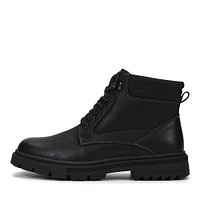 Теплые высокие ботинки серого оттенке органично впишутся в гардероб активного мужчины. Материал верха - текстурированная кожа из спилка с влагонепроницаемым покрытием. Шерстяные подкладка и стелька поддерживают комфортную температуру внутри обуви на улице и в помещении. Утолщенная подошва из ТЭП с выраженными протекторами не утяжеляет обувь и гарантирует устойчивость на любых покрытиях.