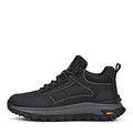 Базовые черные кроссовки - идеальное решение для тех, кто всегда в движении. Верх сочетает гладкую кожу из спилка и непромокаемый текстиль. Шерстяные подкладка и стелька поддерживают комфортную температуру внутри обуви на улице и в помещении. Объемная подошва из материала ЭВА с выраженными протекторами отличается особой легкостью и хорошими амортизирующими свойствами.