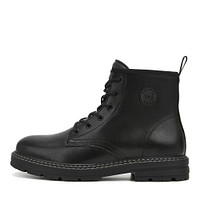 Мужские черные дерби из кожи из спилка – это комфортная модель для прогулок, поездок, активного отдыха. Обувь утеплена ворсином, поэтому хорошо защищает стопы от холода, ветра и сырости. Пара на шнуровке, с голенищем, закрывающим щиколотку. Утолщенная подошва из материала ТЭП обеспечивает оптимальное положение стоп и надежное сцепление с поверхностью.