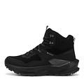 Актуальные черные ботинки в стиле треккинговой обуви. Верх из плотного текстиля дополнительно укреплен современной искусственной кожей. Подкладка и стелька из дышащих материалов обеспечивают комфорт стоп даже при длительной носке. Объемная подошва из ТЭП отличается легкостью и хорошим сцеплением с любой поверхностью.