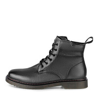 Минималистичные коричневые ботинки в стиле высоких дерби. Верх выполнен из натуральной кожи, которая надежно защищает ноги от ветра и слякоти. Подкладка и стелька утеплены шерстью, что обеспечивает комфорт стоп на улице и в помещении. Утолщенная подошва из материала ПВХ добавляет комфорта в повседневном использовании. Модель оснажена прочной шнуровкой и удобной молнией.