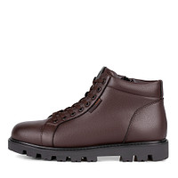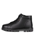 Минималистичные черные ботинки на холодный сезон. Верх выполнен из натуральной кожи из спилка. Подкладка и стелька утеплены шерстью. Утолщенная резиновая подошва обеспечивает надежное сцепление с любой поверхностью.