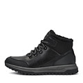 Теплые черные ботинки выполнены в стилистике треккинговой обуви. Верх сочетает мягкую кожу из спилка со вставками из плотного текстиля. Шерстяные подкладка и стелька поддерживают оптимальную температуру внутри обуви. Подошва из материала ТЭП обеспечивает устойчивость на любой поверхности.