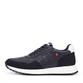 Темно-синие кожаные мужские кроссовки со вставками из ворсистого спилка. Комфорт стоп обеспечивают подкладка и стелька, выполненные из мягкой натуральной кожи. Гибкая подошва из материала ТЭП адаптируется под движения стопы. Шнуровка надежно фиксирует пару на ноге.