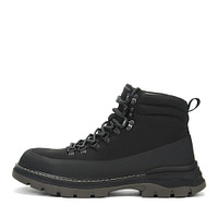 Базовые рыжие ботинки в стиле треккинговой обуви подойдут для активных мужчин и станут акцентом образа. Верх выполнен из практичной кожи из спилка и дополнительно укреплен полиуретаном для максимальной защиты от влаги и ветра. Подкладка и стелька утеплены натуральной шерстью. Утолщенная резиновая подошва с выраженными протекторами обеспечат устойчивость на любой поверхности.