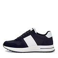 Мужские кроссовки из натуральной кожи и текстиля с шнуровкой на гибкой резиновой подошве с амортизацией и противоскользящими свойствами. Легкие, дышащие и удобные для спорта, прогулок и повседневной носки. Сочетаются с одеждой в стиле casual и спорт. Стелька из натуральной кожи, качественная фурнитура, синий цвет с белыми вставками.