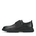 Черные кожаные дерби на утолщенной подошве. Комфорт стоп обеспечивают подкладка и стелька, выполненные из мягкой натуральной кожи. Эластичные вставки отвечают за идеальную посадку. Высокая резиновая подошва поддерживает стопы в оптимальном положении. Шнуровка надежно фиксирует пару на ноге.