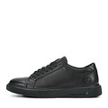 Лаконичные черные кеды из гладкой натуральной кожи. Комфорт стоп обеспечивают мягкая текстильная подкладка и кожаная стелька. Гибкая резиновая подошва поддерживает стопы в оптимальном положении. Шнуровка надежно фиксирует пару на ноге.