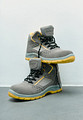 Стильные серые ботинки в стиле work boots c яркими желтыми вставками. Материал верха - сочетание бархатистого спилка и текстиля для оптимальной терморегуляции. Объемная подошва из полиуретана отличается легкостью и поддерживает стопы в правильном положении.