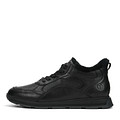 Повседневные высокие кроссовки черного цвета. Верх комбинирует гладкую и зернистую кожу. Подкладка и стелька из натурального меха эффективно сохраняет тепло внутри обуви. Утолщенная резиновая подошва отличается прочностью и надежным сцеплением с любой, даже скользкой, поверхностью.