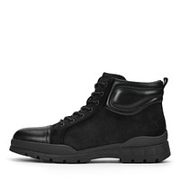 Актуальные коричневые ботинки из бархатистого спилка. Отрезной носок и ворот укреплены прочной КРС черного цвета, создавая на верху модели стильную игру цвета и фактур. Шерстяная стелька сохраняет тепло внутри обуви. Утолщенная подошва из материала ТЭП с применением технологии Flex отличается особой гибкостью, легкостью и отличным сцеплением с любой поверхностью. Пара фиксируется шнурками и удобной застежкой на молнию.