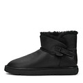 Уютные черные угги из нежной кожи шевро. Пара надежно фиксируется застежкой велькро и пряжкой. Подкладка и стелька утеплены натуральным мехом для максимального тепла и комфорта. Утолщенная резиновая подошва надежно защищает стопы от влаги и холода, а также обеспечивает устойчивость на любой поверхности.