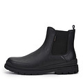 Стильные черные челси на холодный сезон. Верх выполнен из текстурированной кожи из спилка и дополнен эластичными вставками для надежной фиксации пары. Подкладка и стелька утеплены войлоком. Утолщенная рифленая подошва из материала ТЭП обеспечивает надежное сцепление с любой поверхностью.