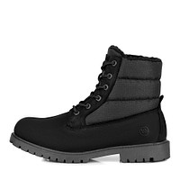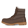 Мужские ботинки из прочного нубука дополнены стеганным верхом из водостойкого текстиля, что добавляет ощущение повышенного комфорта при использовании. Контрастная подошва с высоким протектором способствует улучшенному сцеплению на зимних дорогах. За тепло отвечает подкладка из густой шерсти.
