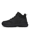 Дизайн черных ботинок стилизован под треккинговую обувь и адаптирован для повседневной жизни. Верх сочетает современную искусственную кожу со вставками из плотного текстиля. Утолщенный ворот бережно поддерживает зону щиколоток. Подкладка и стелька утеплены мягким ворсином. Подошва из материала ЭВА амортизирует нагрузку и ударную силу, а подметка из ТЭП обеспечивает надежное сцепление с любой поверхностью.